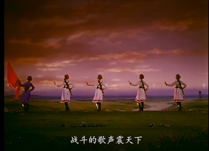 蒙太奇剪輯的節(jié)奏再造則重塑了舞蹈的視覺體驗。舞臺上的舞蹈遵循線性的、不可逆的時間流,而電影通過剪輯,可以打破這種線性束縛,創(chuàng)造全新的節(jié)奏與韻律。在表現(xiàn)女民兵與暴風(fēng)雨搏斗的段落中,快速的鏡頭切換、不同角度的交替呈現(xiàn)、動作的重復(fù)與強化,構(gòu)建出一種比現(xiàn)場演出更為緊張、更具沖擊力的視覺節(jié)奏。舞蹈中“揚鞭催馬”的豪邁、“戰(zhàn)刀閃亮”的凌厲,通過精心設(shè)計的剪輯,被提煉為一系列極具標(biāo)志性的視覺符號,深深烙印在觀眾的記憶中。