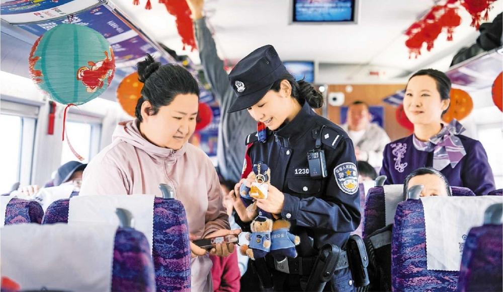 旅客參與猜燈謎活動。3月3日,銀川鐵路公安處民警在G3189次列車上舉行警民同慶元宵節(jié)安全宣傳活動,乘警與列車工作人員將反電詐、防盜竊等安全乘車注意事項與元宵節(jié)元素巧妙融合,制作成燈謎吸引眾多旅客參與。新甘肅·甘肅法治報通訊員 郭永紅 攝