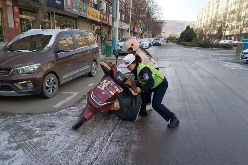 雨雪寒潮之中,定西公安交警始終堅守崗位,在疏堵保暢的同時,化身“暖心衛(wèi)士”,主動為受困群眾和車輛提供貼心救助。面對積雪路面車輛打滑、拋錨等突發(fā)情況,民輔警們不畏嚴寒,俯身推車、幫助安裝防滑鏈、排查車輛故障;針對出行不便的老人、學(xué)生等群體,主動攙扶護送,耐心解答指引、提供應(yīng)急幫助。一幕幕暖心瞬間在雨雪街頭不斷上演,贏得過往群眾紛紛點贊。