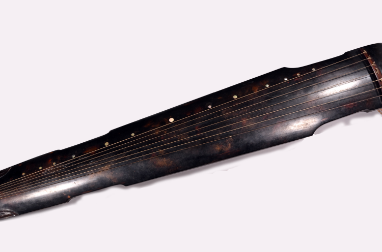 明代,通長124.5厘米,琴額寬17.3厘米,琴肩寬21厘米,琴尾寬13厘米,形制為仲尼式,琴面為梧桐木,通體呈深栗色。護軫為卷角飾,弦軫為紅木制成。琴腹龍池上方鐫刻篆書詩一首“空山無人,鳴泉幽咽,歸從舒音,淖猨司鈴”,共16字,落款為“鄭世子”。池下沼上鐫刻方形篆書印章一方,為“鄭學圖書”。刻腹款“大明萬歷十年歲次壬午二月吉旦,鄭世子載堉按太簇尺造”。朱載堉是明代杰出律學家、歷算家,首創(chuàng) “十二平均律”,在音樂、數(shù)學、天文等領域均有重大建樹。