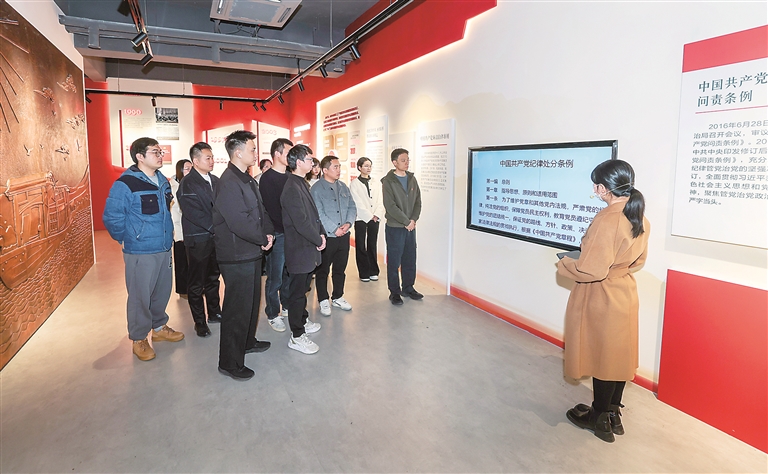 近日,浙江省嘉興市南湖區(qū)開展廉潔教育主題黨日活動(dòng),組織黨員干部走進(jìn)廉政教育基地接受教育,引導(dǎo)黨員干部做到篤信務(wù)實(shí)擔(dān)當(dāng)自律。圖為該區(qū)青年黨員干部參觀南湖紅廉館。新華社記者 徐昱 攝