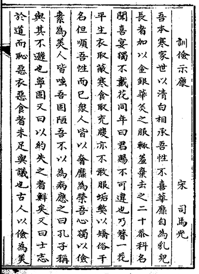 北宋司馬光的名篇《訓(xùn)儉示康》,教導(dǎo)其子崇儉戒奢,選自江西省圖書館藏清代《古文輯略》。圖片來源:中華古籍智慧化服務(wù)平臺