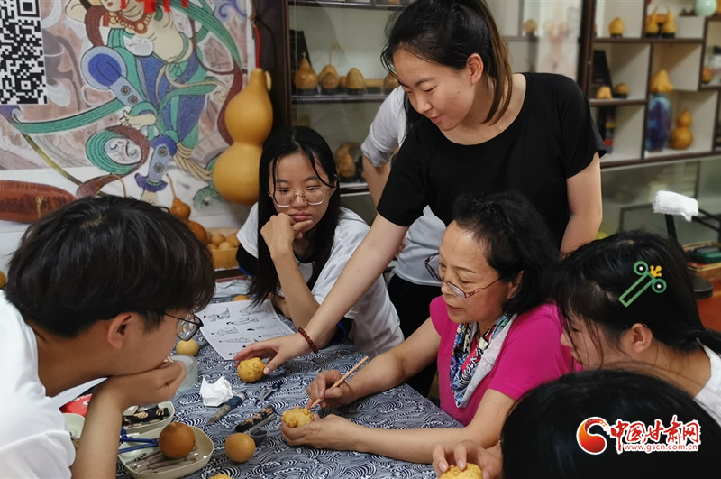 她還走進(jìn)蘭州開放大學(xué),為熱愛刻葫蘆的老年人手把手地傳授技藝,耐心細(xì)致地指導(dǎo)他們?nèi)绾卧谛⌒〉暮J上刻畫出精美的圖案。