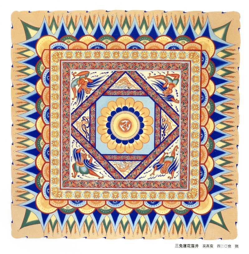 莫高窟,這座屹立于絲路要沖的藝術寶庫,承載著無數先人的智慧與夢想。其中,第407窟窟頂的蓮花三兔藻井,是隋代具有代表性的藻井圖案之一。