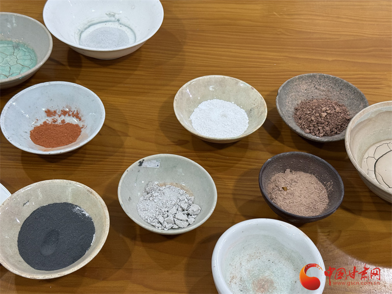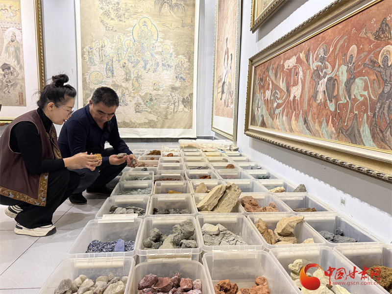 “莫高窟壁畫是文化交融的藝術(shù)結(jié)晶,畫師的顏料有的來(lái)自敦煌本土采集,也有從中原和西域帶來(lái)的,這些礦物質(zhì)顏料以頑強(qiáng)的生命力為今人保存了堪稱瑰寶的技術(shù)殿堂。”王亞林介紹莫高窟壁畫的長(zhǎng)青密碼,作為敦煌人,她要沿著前人的足跡尋找敦煌的色彩。三危山上有10多種制作顏料的礦物質(zhì),大泉河畔有澄板土,這些都是王亞林收集的敦煌色彩。