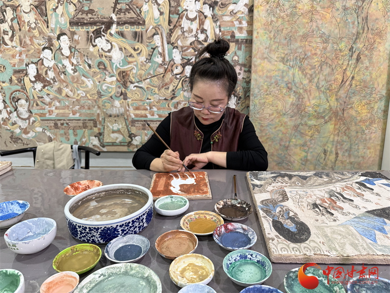 10月31日,由中央網(wǎng)信辦網(wǎng)絡(luò)傳播局、國(guó)家文物局政策法規(guī)司指導(dǎo),中國(guó)互聯(lián)網(wǎng)發(fā)展基金會(huì)特別支持,甘肅省委網(wǎng)信辦、省文物局主辦,張掖、嘉峪關(guān)、酒泉市委網(wǎng)信辦與敦煌研究院、中國(guó)甘肅網(wǎng)、鳳凰網(wǎng)甘肅頻道共同承辦的“何以中國(guó)|壁畫里的中國(guó)·當(dāng)AI遇見小飛天”網(wǎng)絡(luò)主題宣傳活動(dòng)采訪了敦煌石粉彩繪技藝的非遺傳承人王亞林。