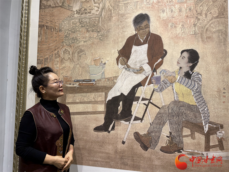王亞林說(shuō),她這幅畫里的學(xué)生是按照自己來(lái)畫的,在敦煌壁畫的世界里,每個(gè)人都是虔誠(chéng)的學(xué)習(xí)者。