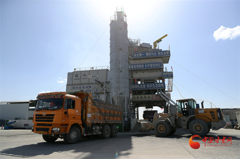 盛夏時(shí)節(jié),戈壁熱浪滾滾,路面攤鋪更加繁忙,瀝青拌合站火力全開,保障路面作業(yè)。