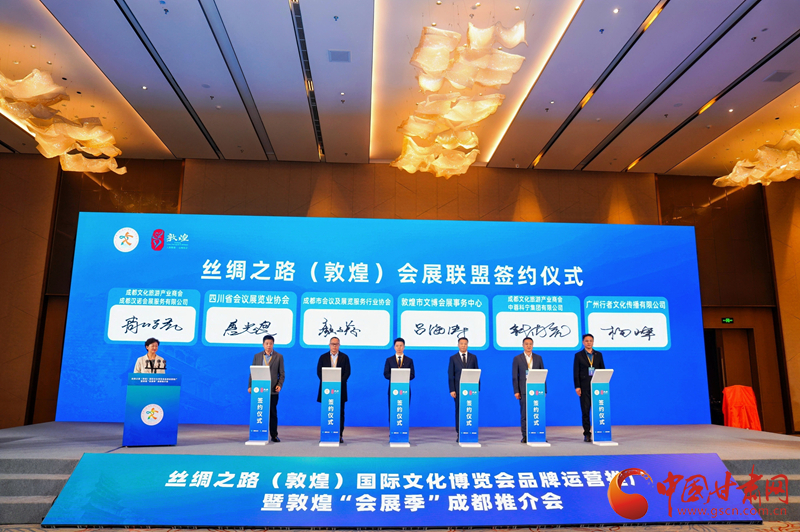 簽約儀式后,還舉行了絲綢之路(敦煌)會展聯(lián)盟(成都)推廣中心揭牌儀式,標(biāo)志著敦煌會展在成都及周邊地區(qū)推廣正式開啟,兩地會展合作進入常態(tài)化、機制化新階段。