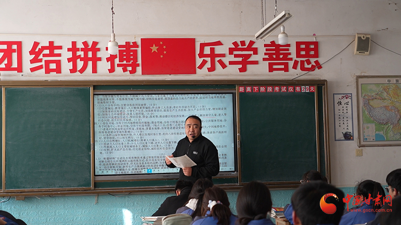 “威戎中學(xué)全體教師始終堅(jiān)守崇德、尚真、弘文、明理的校訓(xùn),形成了‘德育為先、五育融合’的育人體系。近年來依托中組部組團(tuán)式幫扶的助力提升,學(xué)校在教學(xué)實(shí)踐中特別注重教學(xué)質(zhì)量的提升,緊扣‘三新’改革要求,推動(dòng)課堂從‘以教為主’向‘以學(xué)為主’轉(zhuǎn)變。在德育方面,我們構(gòu)建了制度化、序列化、規(guī)范化的德育工作體系,通過文明養(yǎng)成教育等多種形式,筑牢學(xué)生思想根基。”靜寧縣威戎中學(xué)教導(dǎo)副主任雍虎虎自豪地說著威戎中學(xué)近些年的變化。