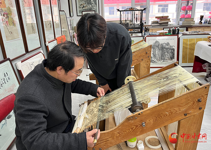 莊浪泥金紙織畫,是一門融合書畫筆墨與手工編織的綜合藝術(shù)。作為省級(jí)非遺項(xiàng)目,其制作需歷經(jīng)六十多道繁復(fù)工序。完成的畫作層次清晰、經(jīng)緯分明,猶如隔紗賞景,霧里看花,以獨(dú)特韻味穿越百年時(shí)光,至今熠熠生輝。
