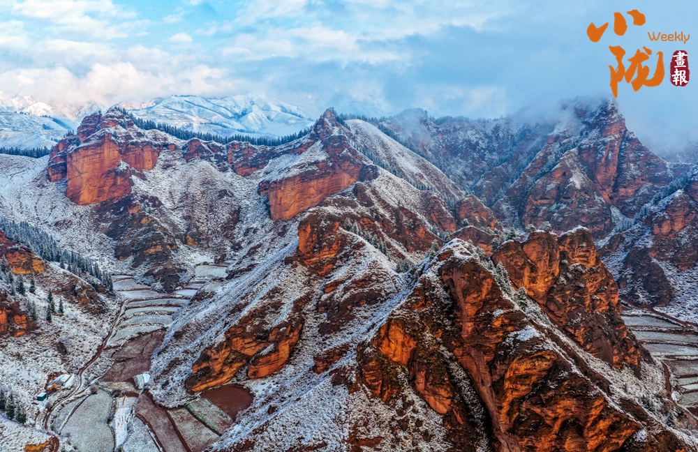 晨光中,雪色與丹霞相映生輝;暮色里,赤巖與積雪共染余暉。這幅景象既有西北的蒼茫,又不失江南的婉約,是自然贈(zèng)與的視覺(jué)盛宴。