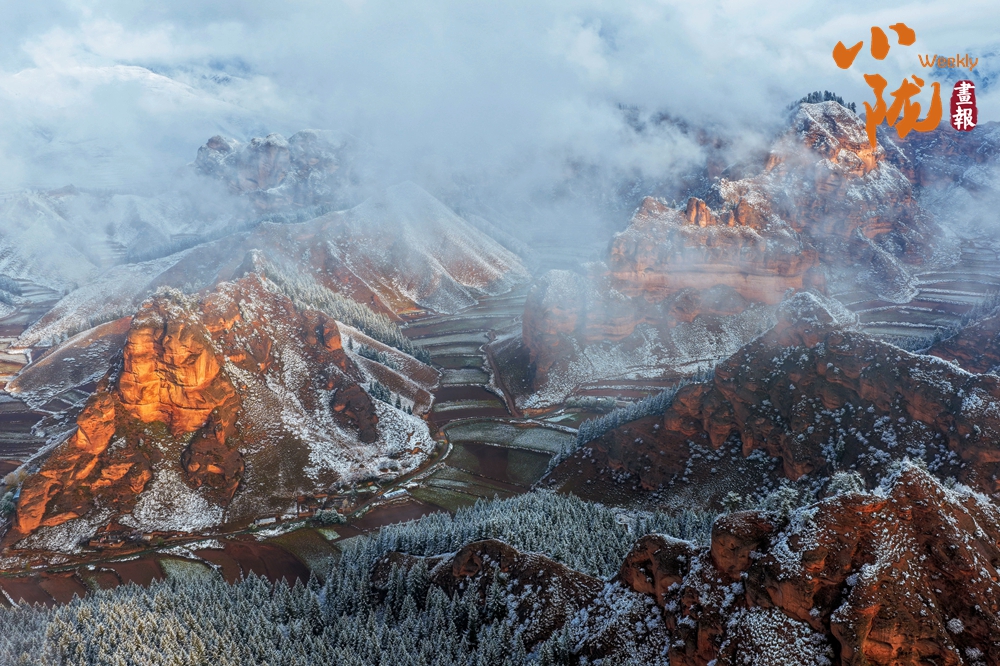 當(dāng)陽(yáng)光漫灑,積雪映襯著巖層的斑斕紋理,山間霧氣如輕紗浮動(dòng),仿佛大地正以靜默完成一場(chǎng)季節(jié)的儀式。這片雪中丹霞,既存地質(zhì)之雄魄,亦添冬日的空靈詩(shī)意。