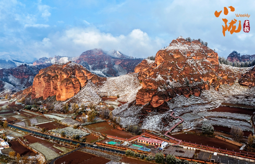 丹霞的漫山赤紅與覆雪的凈白相互襯托,積雪沿巖層紋理自然鋪展,勾畫(huà)出地貌歷經(jīng)風(fēng)霜的歲月痕跡;融雪處,一片片紅色巖體漸次顯露,猶如大地在雪被之下,悄然翻開(kāi)一部古老而熾熱的地質(zhì)史冊(cè)。