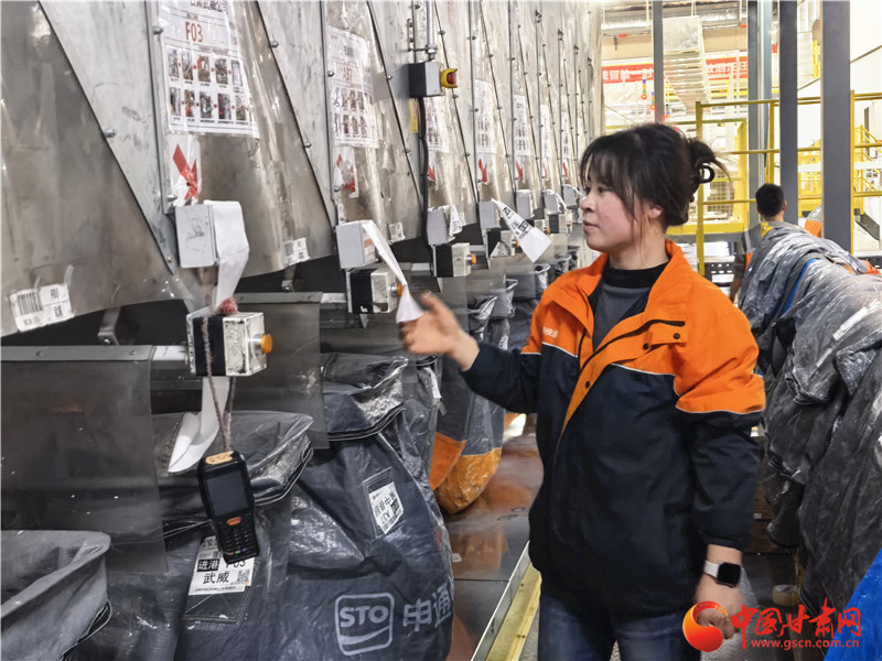 楊秀秀在快遞一線分揀快遞