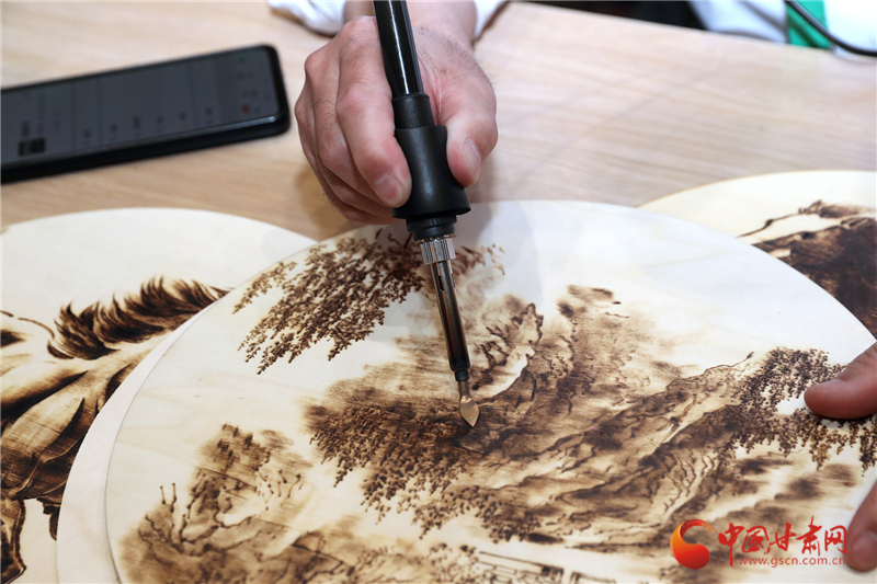 如今,56歲的他創(chuàng)立了自己的烙畫工作室,桌上的電烙鐵換了一把又一把,木板堆成了小山,而他對烙畫的熱情從未減退,始終以匠心守護(hù)著這門古老技藝的溫度。