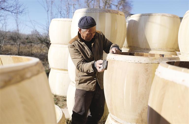冬日農(nóng)閑時節(jié),在甘肅省定西市安定區(qū)鳳翔鎮(zhèn)北廿鋪村,牛皮鼓手工制作藝人利用晴好天氣趕制訂單牛皮鼓,供應(yīng)市場。該村每年可制作各類牛皮鼓3000余面,牛皮鼓手工制作涵蓋選材、解板、刨制鼓腔、蒙皮、釘釘?shù)榷嗟拦ば?,再?jīng)數(shù)天晾曬和反復(fù)調(diào)試才能最終制成。牛皮鼓是我國的傳統(tǒng)打擊樂器,在西北地區(qū)用于民間社火表演等活動。
