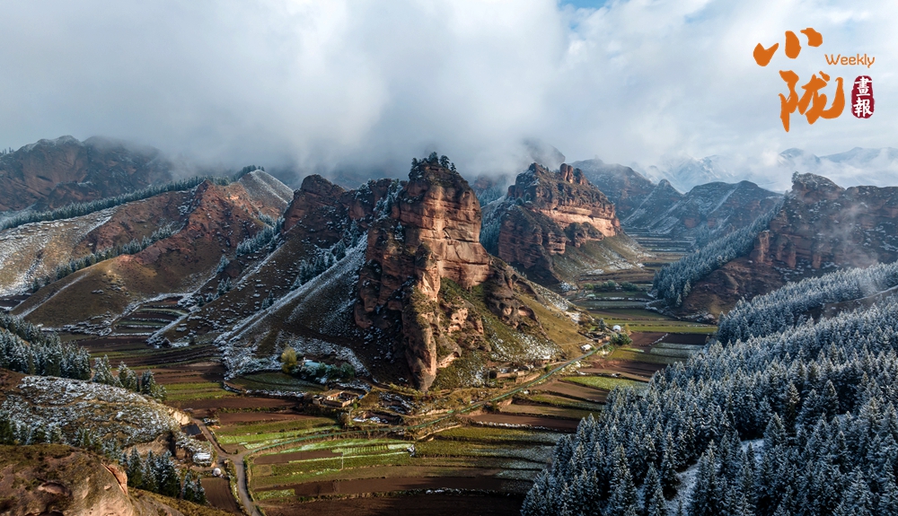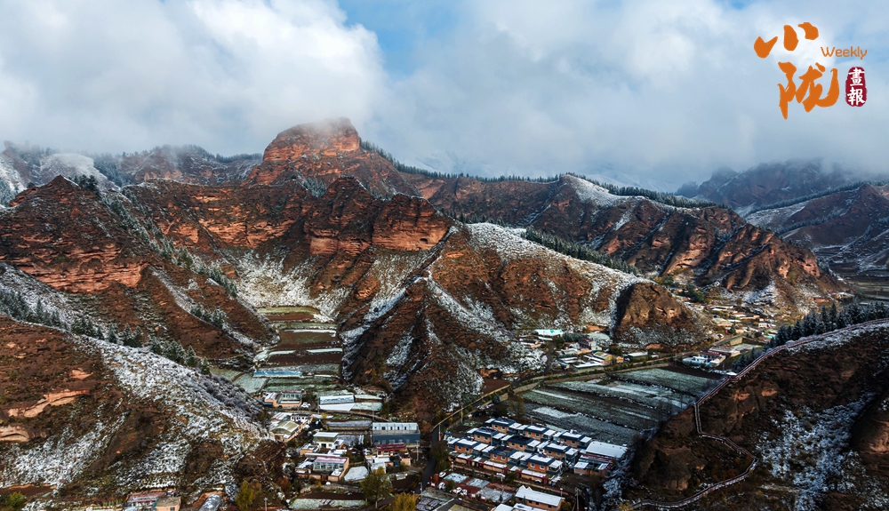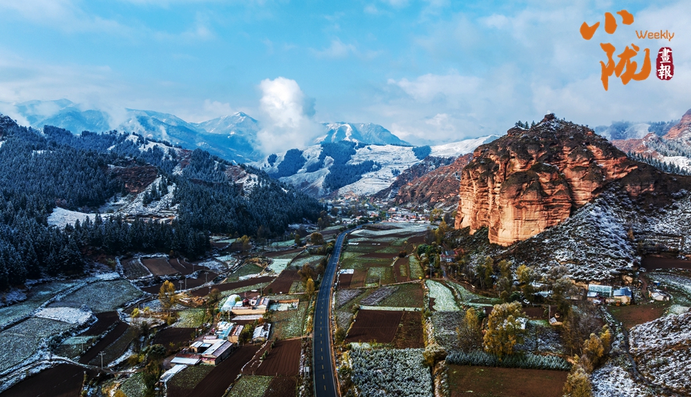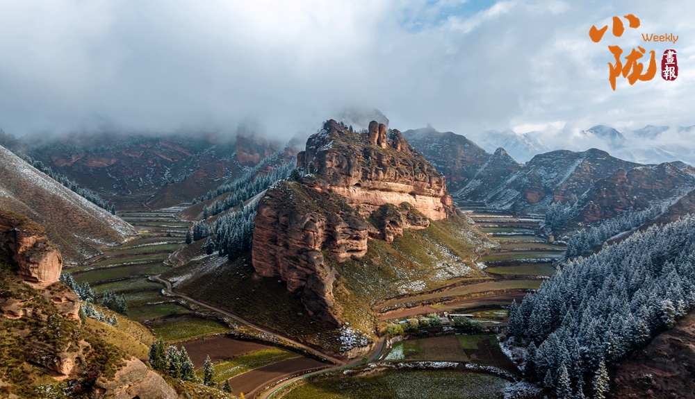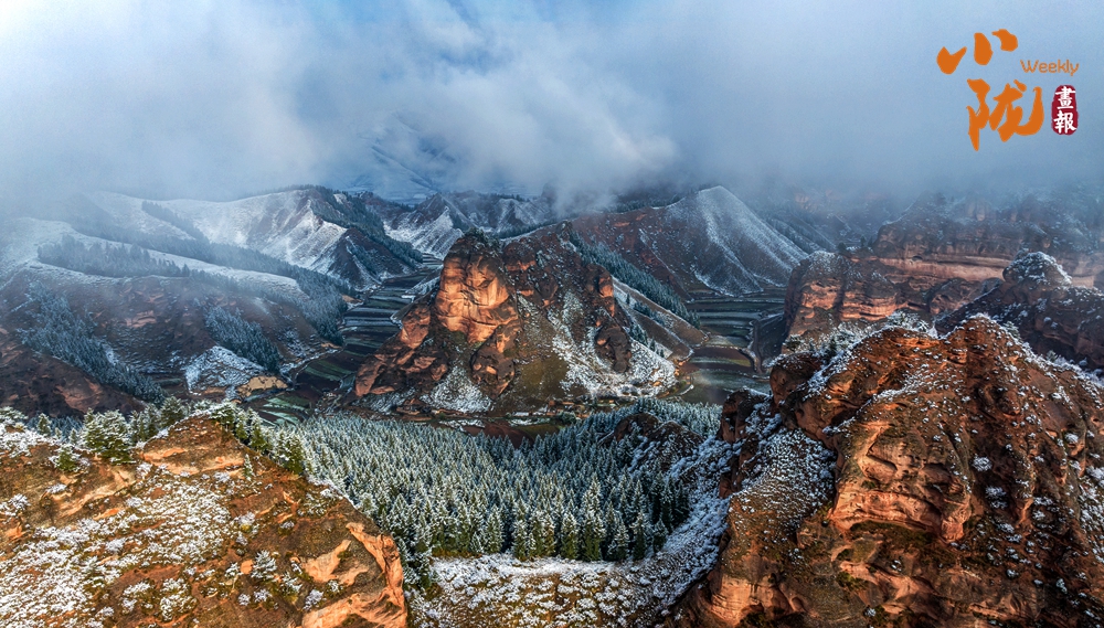 雪后天晴,煙波浩渺,山色空蒙,朱紅色的丹霞與蔥郁的森林、皚皚白雪相映成趣,展現出冬日里別樣的壯麗與靜謐。